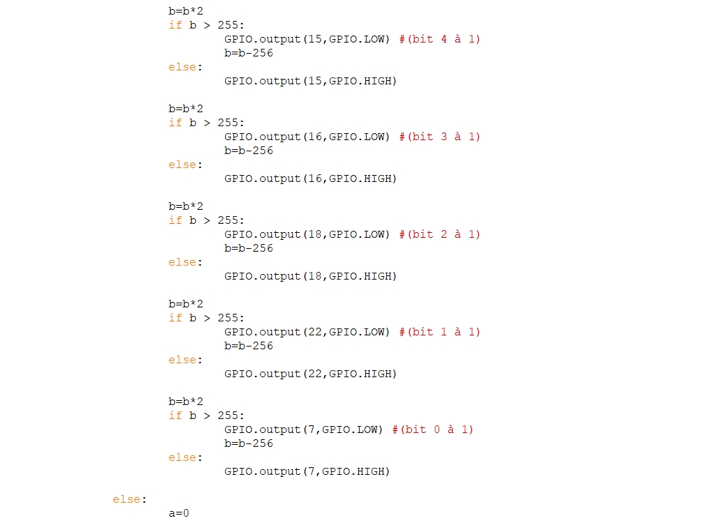 ensuite on vérifie si b est plus grand que 255 si oui le bit est à 1 si non il est à 0